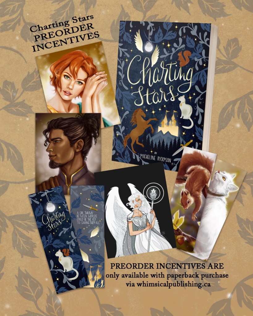 I am very excited today to share with you all the official cover for Micheline Ryckman’s latest creation, a new YA Fantasy called CHARTING STARS!! Ryckman is a talented artist and has been setting aside some time to dedicate to bringing her work to life in a new way through books! Keep reading this post for more on Charting Stars, some awesome pre-order incentives, an exclusive book box, and more about the author and her other stories!